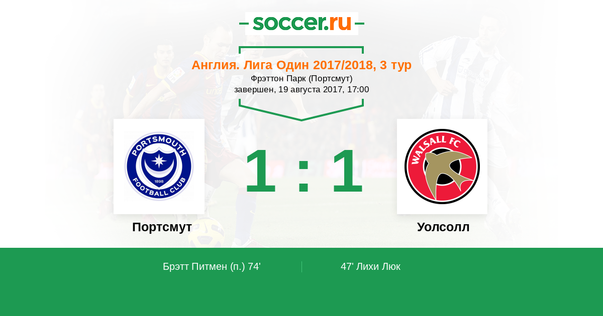 Портсмут - Уолсолл: обзор матча 19 августа 2017