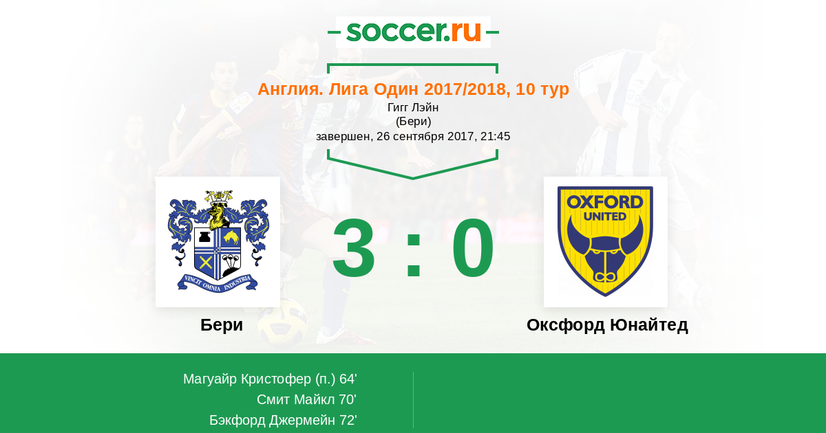 Бери - Оксфорд Юнайтед: обзор матча 26 сентября 2017
