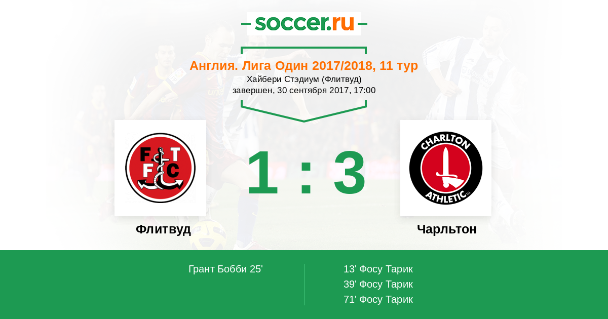 Флитвуд - Чарльтон: обзор матча 30 сентября 2017