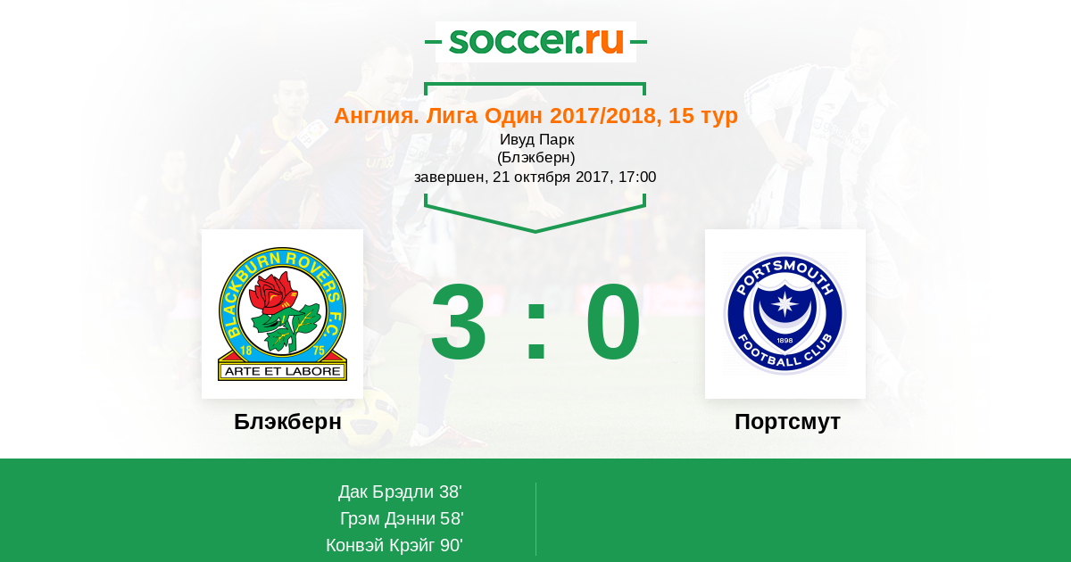 Блэкберн - Портсмут: обзор матча 21 октября 2017