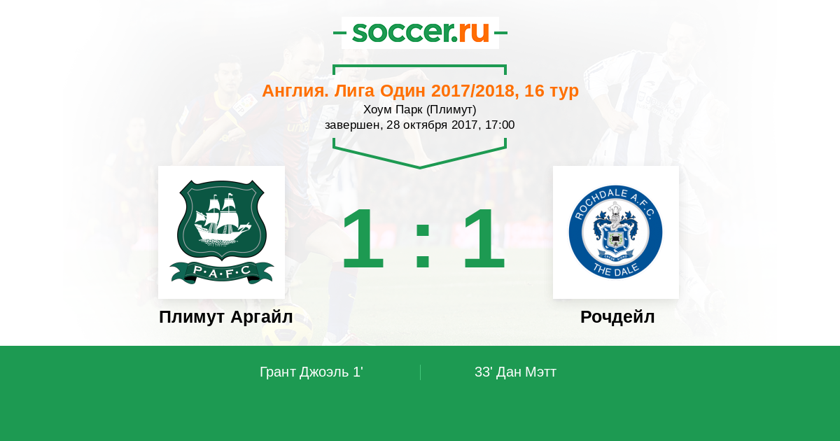 Плимут Аргайл - Рочдейл: обзор матча 28 октября 2017