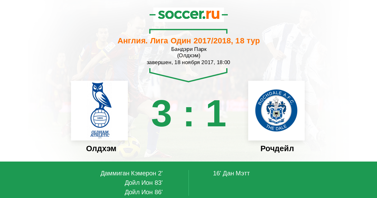 Олдхэм - Рочдейл: обзор матча 18 ноября 2017