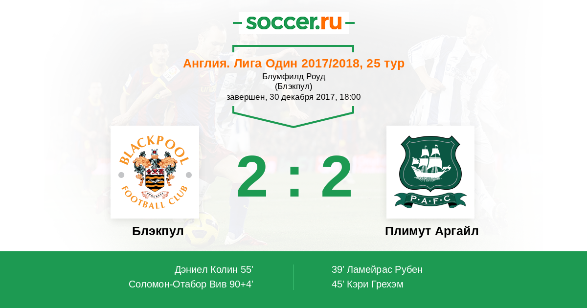 Блэкпул - Плимут Аргайл: обзор матча 30 декабря 2017