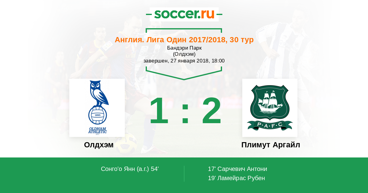 Олдхэм - Плимут Аргайл: обзор матча 27 января 2018