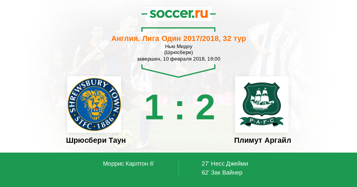 Шрюсбери Таун - Плимут Аргайл: обзор матча 10 февраля 2018