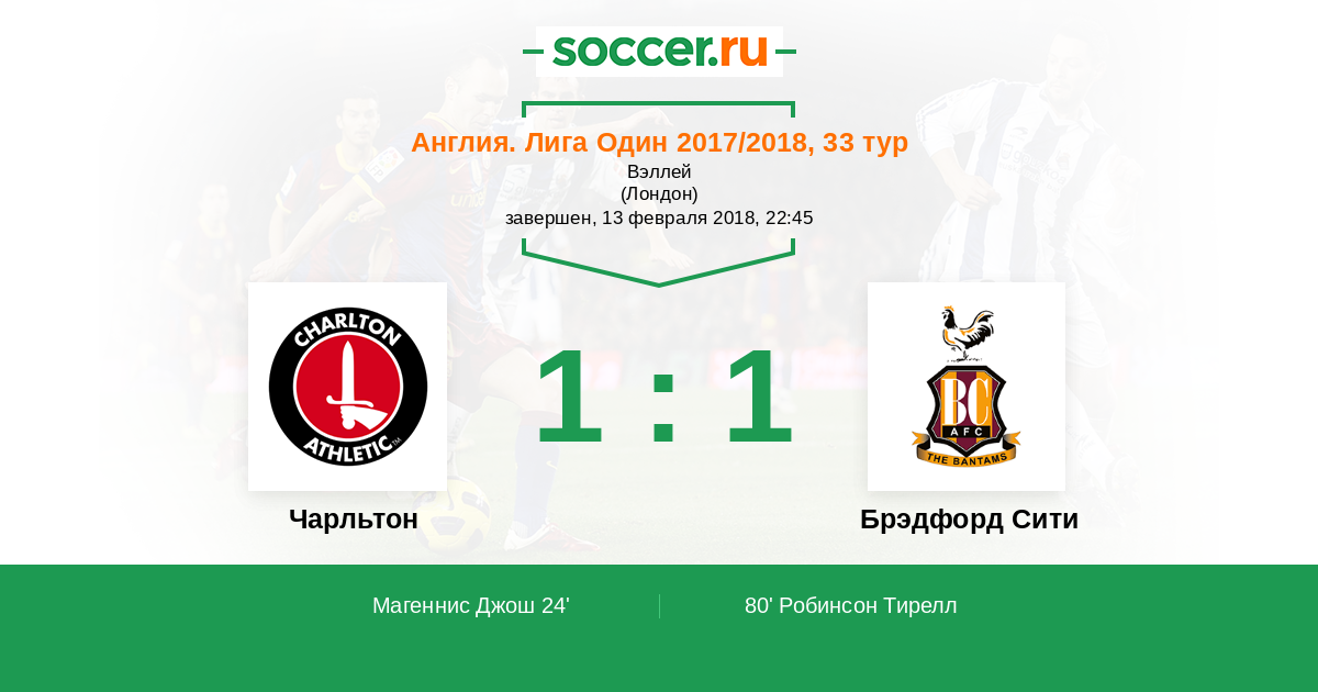 Чарльтон - Брэдфорд Сити: обзор матча 13 февраля 2018