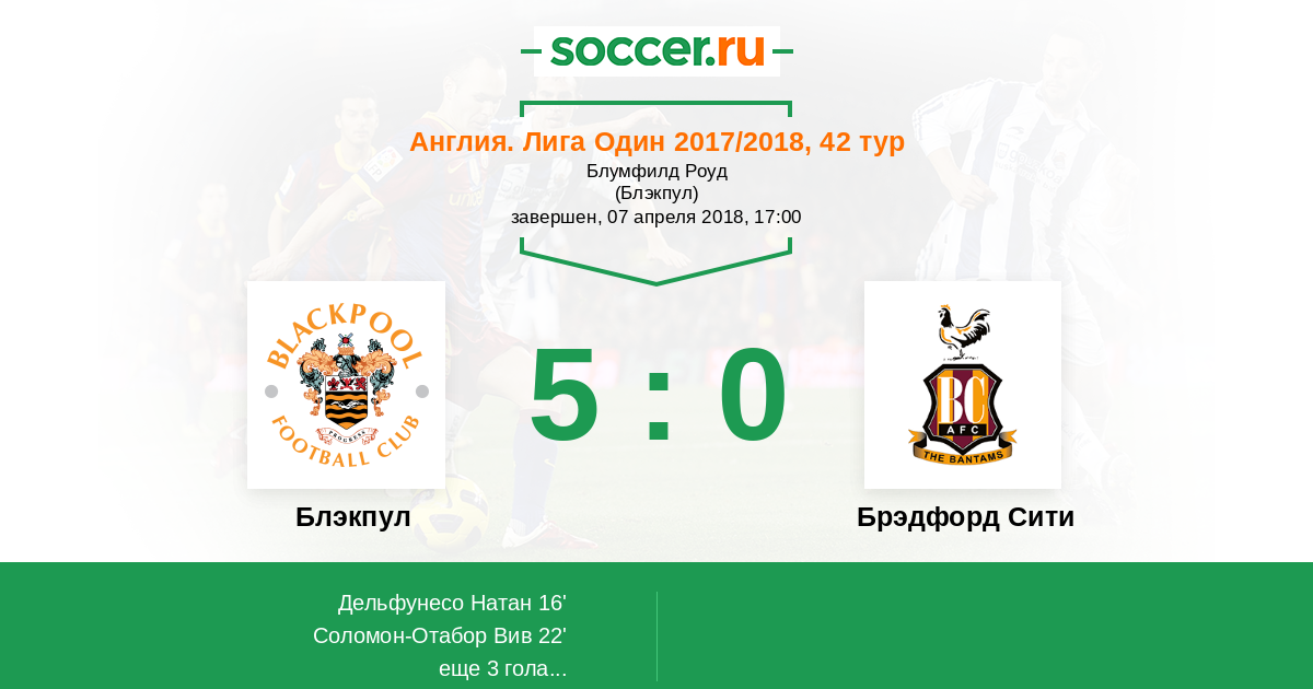 Блэкпул - Брэдфорд Сити: обзор матча 7 апреля 2018