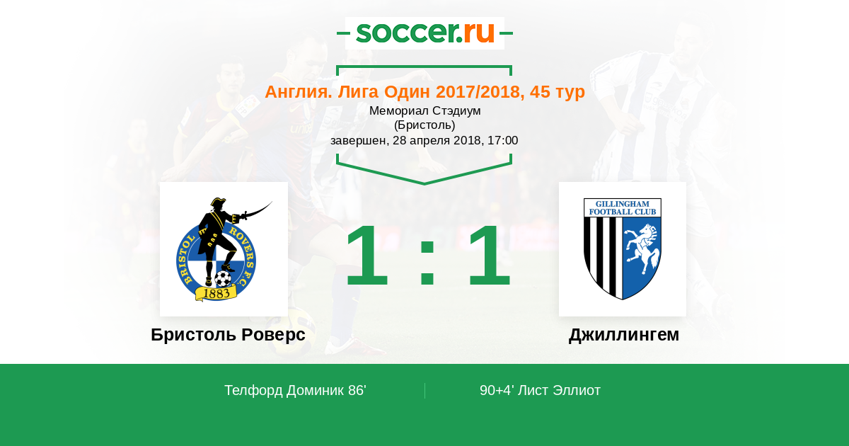 Бристоль Роверс - Джиллингем: обзор матча 28 апреля 2018