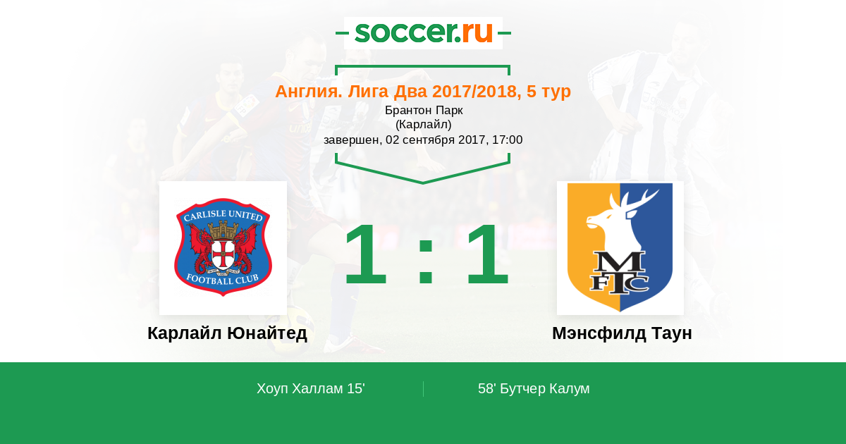 Карлайл Юнайтед - Мэнсфилд Таун: обзор матча 2 сентября 2017