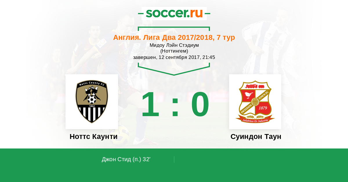 Ноттс Каунти - Суиндон Таун: обзор матча 12 сентября 2017