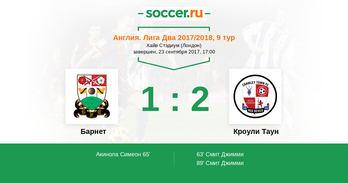 Барнет - Кроули Таун: обзор матча 23 сентября 2017