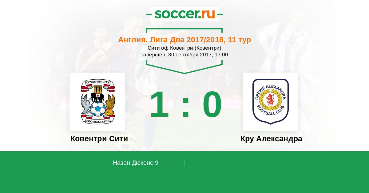 Ковентри Сити - Кру Александра: обзор матча 30 сентября 2017