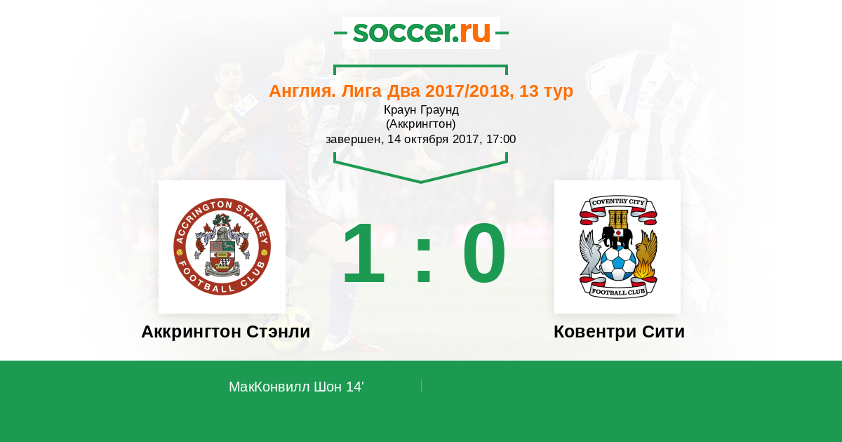 Аккрингтон Стэнли - Ковентри Сити: обзор матча 14 октября 2017