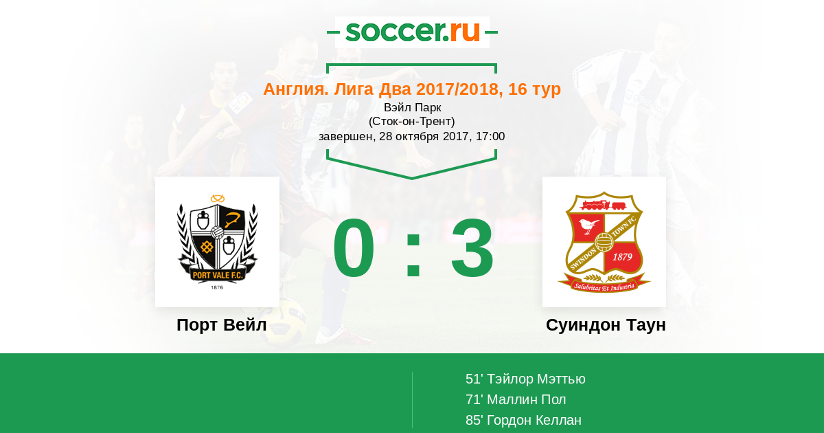 Порт Вейл - Суиндон Таун: обзор матча 28 октября 2017
