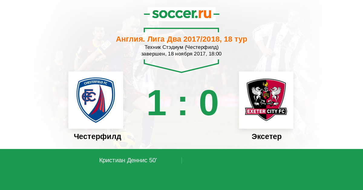 Честерфилд - Эксетер: обзор матча 18 ноября 2017