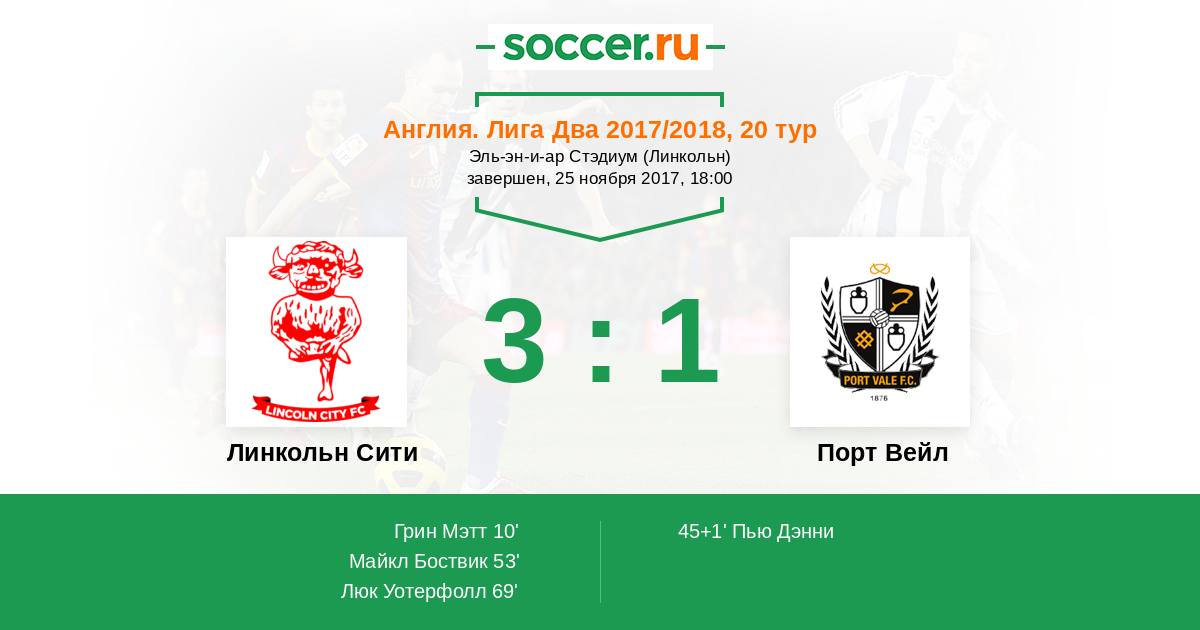Линкольн Сити - Порт Вейл: обзор матча 25 ноября 2017