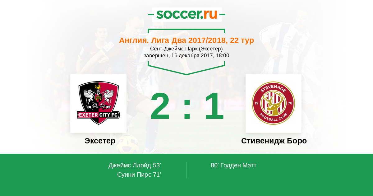 Эксетер - Стивенидж Боро: обзор матча 16 декабря 2017
