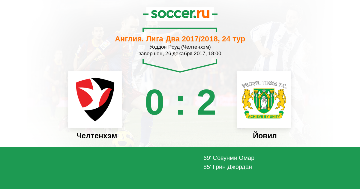 Челтенхэм - Йовил: обзор матча 26 декабря 2017