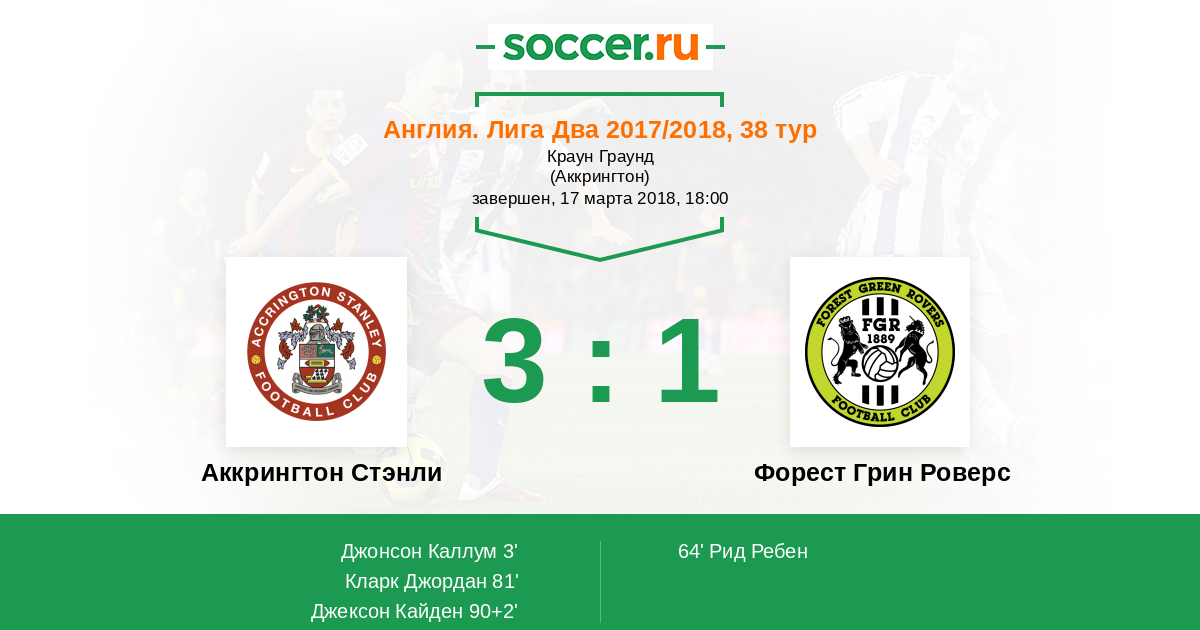 Аккрингтон Стэнли - Форест Грин Роверс: обзор матча 17 марта 2018