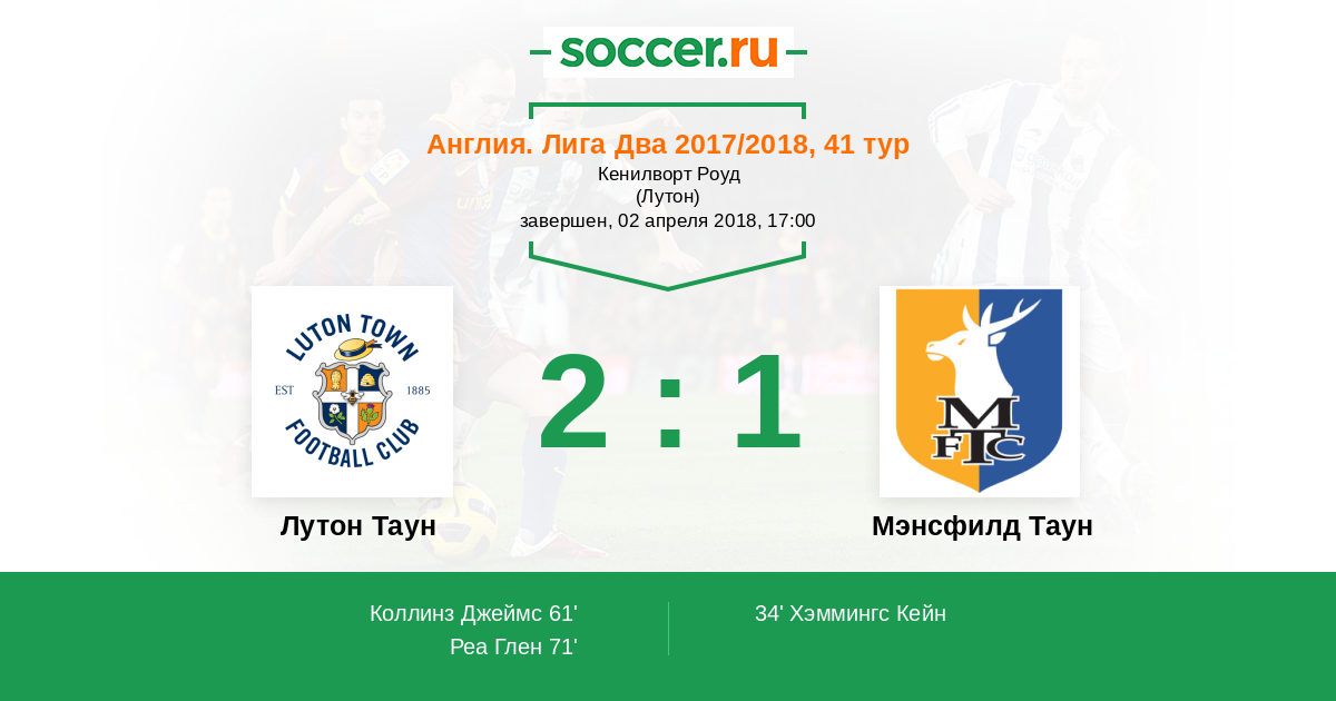 Лутон Таун - Мэнсфилд Таун: обзор матча 2 апреля 2018