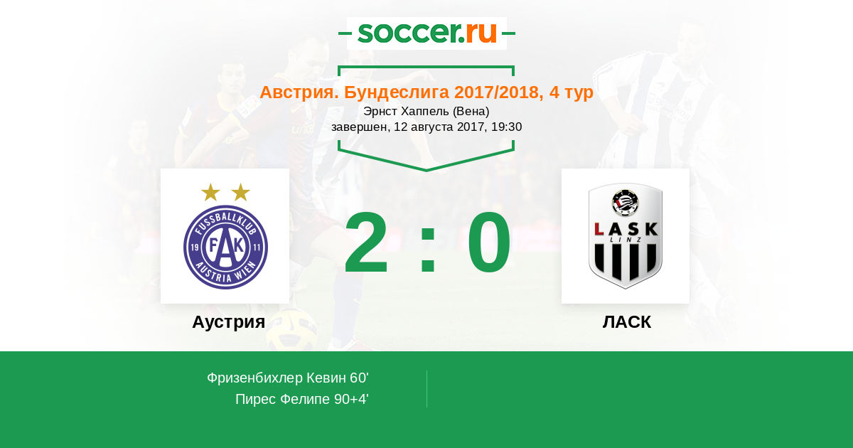 Аустрия - ЛАСК: обзор матча 12 августа 2017