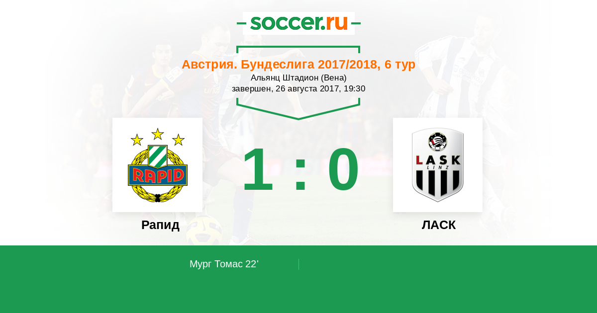 Рапид - ЛАСК: обзор матча 26 августа 2017