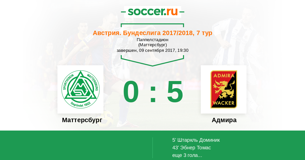 Маттерсбург - Адмира: обзор матча 9 сентября 2017