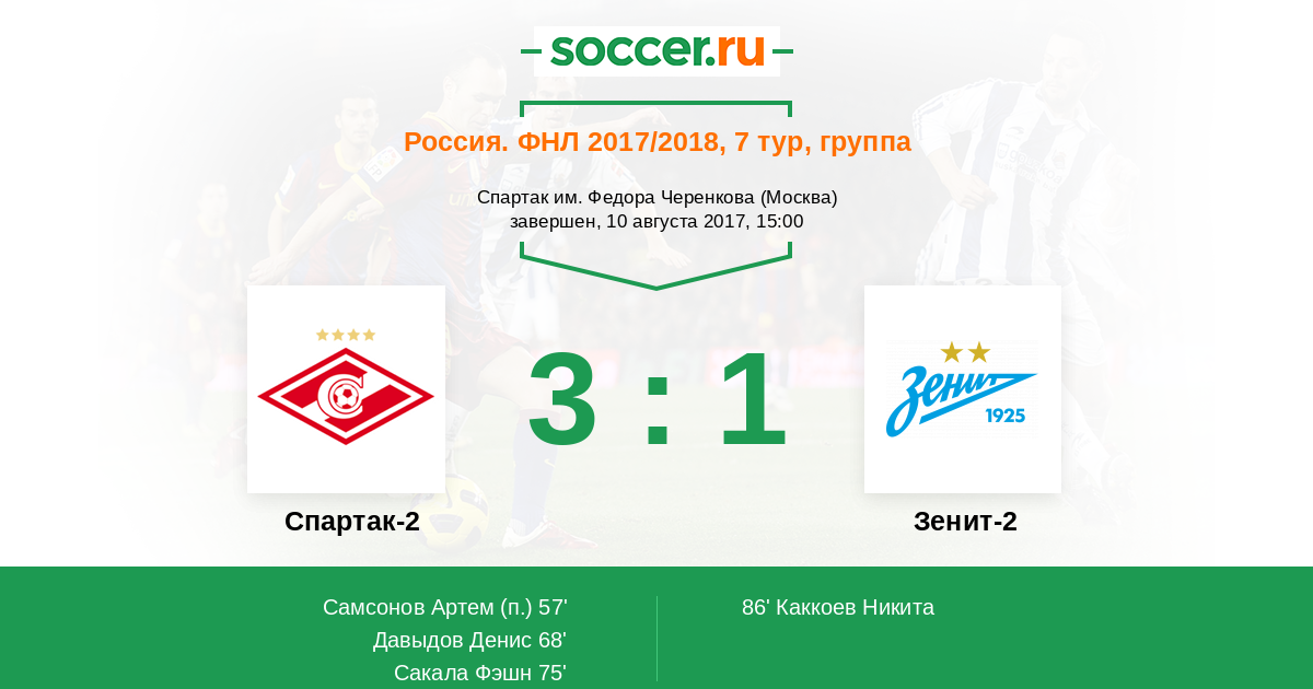 Дерби двух столиц с приставкой "2" проходило с небольшим преимуществом москвичей. "Спартак-2" активно начал первый тайм, но не смог реализовать моменты. В перерыве матча команда сделала выводы и во втором тайме принялась за дело. "Зенит-2" на три пропущенных мяча сумел ответить одним под самый конец встречи. Таким образом, питерские дублёры продолжают находиться внизу турнирной таблицы. Прямую текстовую онлайн трансляцию матча для вас провёл Старчеус Сергей. До новых встреч на https://www.soccer.ru !
