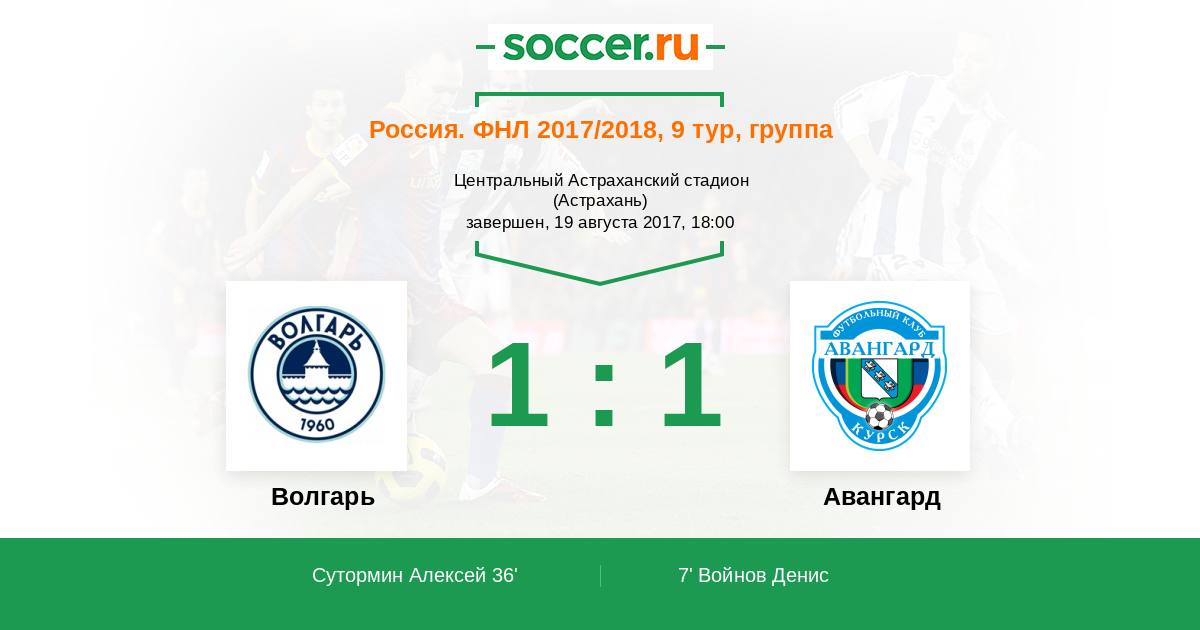 Волгарь - Авангард: обзор матча 19 августа 2017