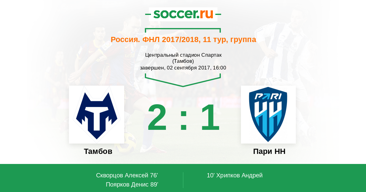 Тамбов - Пари НН: обзор матча 2 сентября 2017