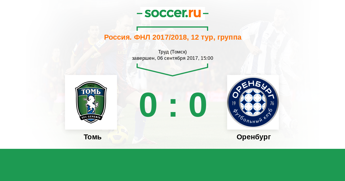 Томь - Оренбург: обзор матча 6 сентября 2017