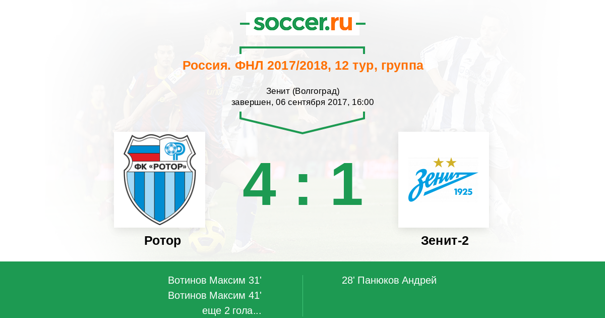 Ротор - Зенит-2: обзор матча 6 сентября 2017