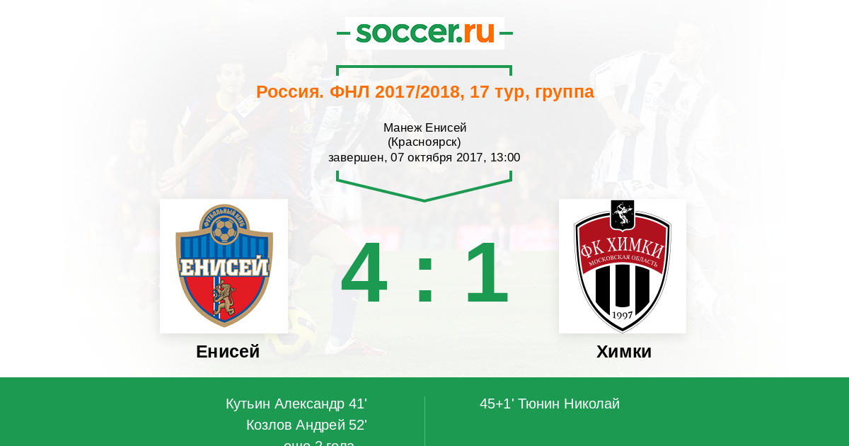 Енисей - Химки: обзор матча 7 октября 2017