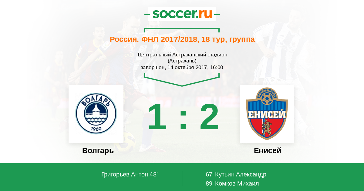 Волгарь - Енисей: обзор матча 14 октября 2017