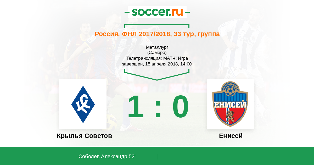 Крылья Советов - Енисей: обзор матча 15 апреля 2018