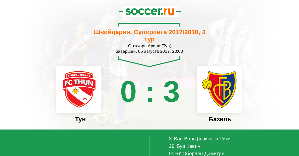 Тун - Базель: обзор матча 5 августа 2017