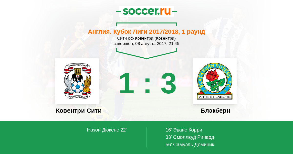 Ковентри Сити - Блэкберн: обзор матча 8 августа 2017
