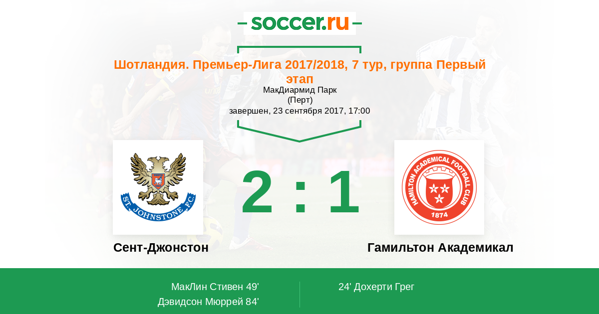 Сент-Джонстон - Гамильтон Академикал: обзор матча 23 сентября 2017