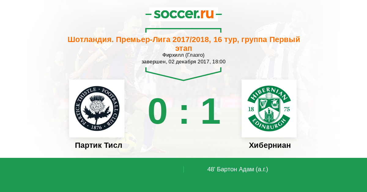 Партик Тисл - Хиберниан: обзор матча 2 декабря 2017