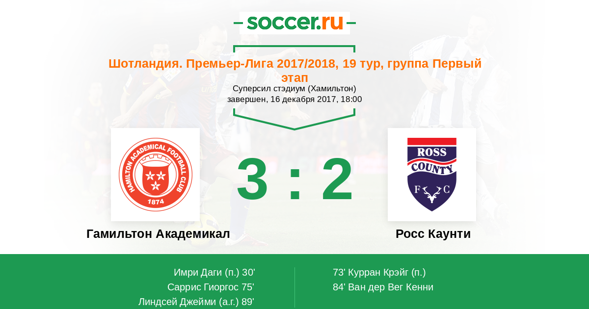 Гамильтон Академикал - Росс Каунти: обзор матча 16 декабря 2017