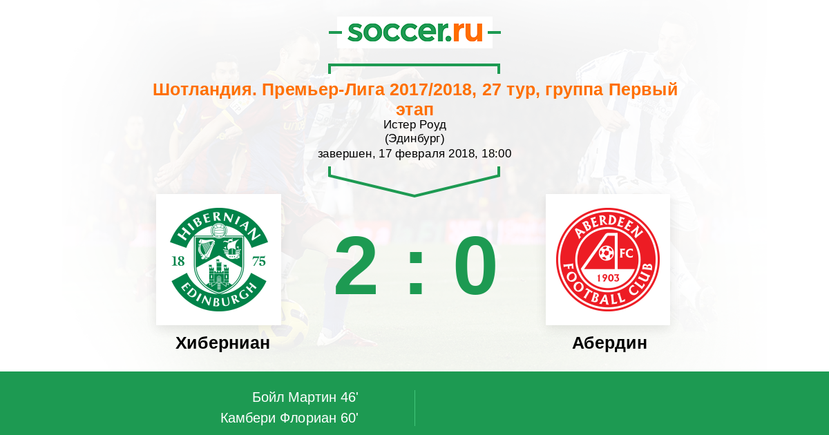 Хиберниан - Абердин: обзор матча 17 февраля 2018