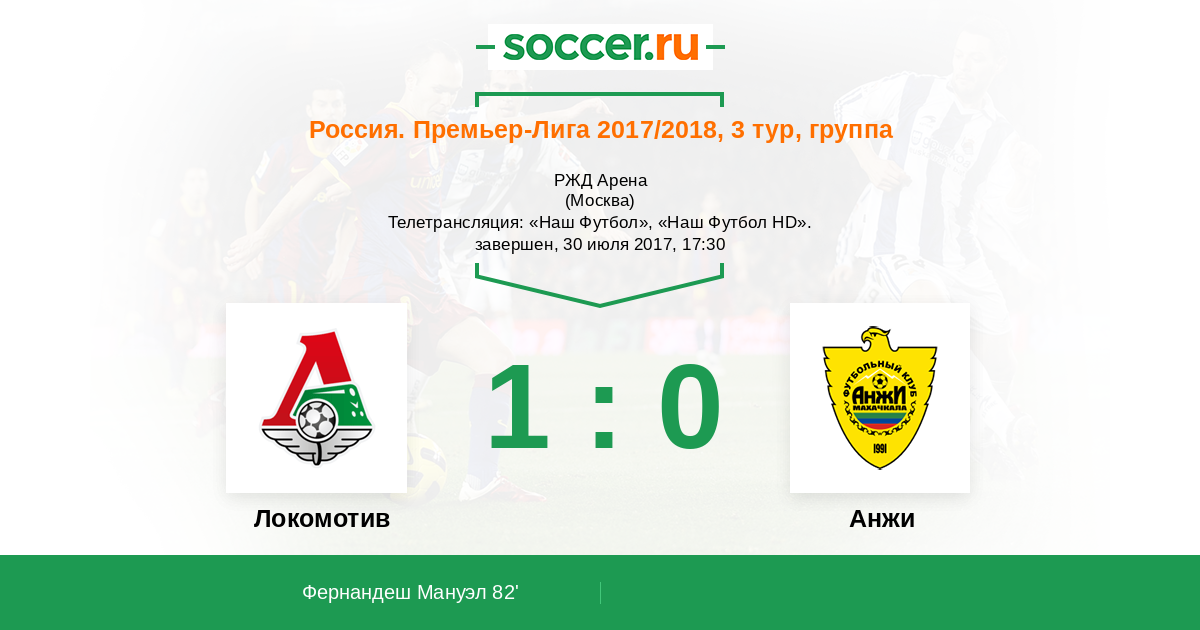 Тяжелейшая победа железнодорожников в день рождения своего президента клуба - Ильи Геркуса. "Анжи" показал характер и мужество, у этого коллектива всё получится, но сегодня они уступили. Надо признать, что "Локомотив" был настроен на победу с самого начала встречи и оказывал давление на оборону "Анжи". "Локомотив" становится вторым клубом после "Ахмата", который не теряет очков в нынешнем сезоне. Прямую текстовую онлайн трансляцию матча для вас провёл Старчеус Сергей, до новых встреч на https://www.soccer.ru !