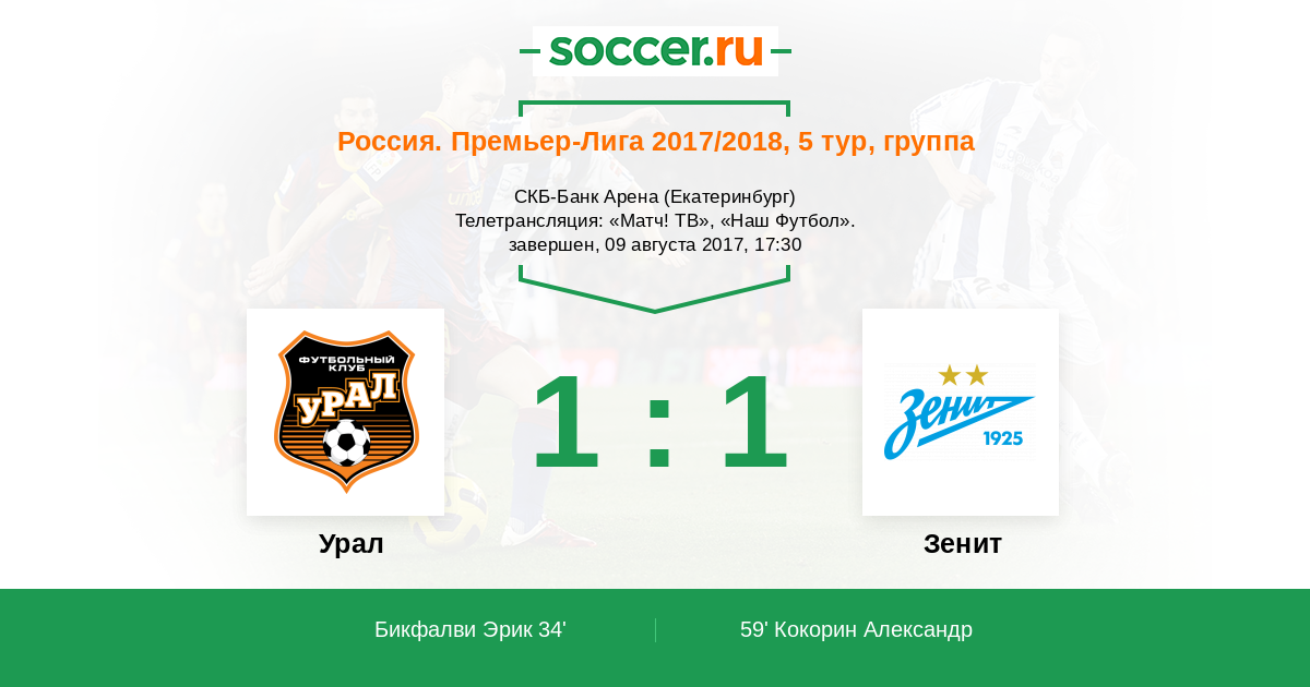 Екатеринбург, СКБ-Банк Арена, зрителей: 8965 Телетрансляция: "Матч! ТВ", "Наш Футбол".