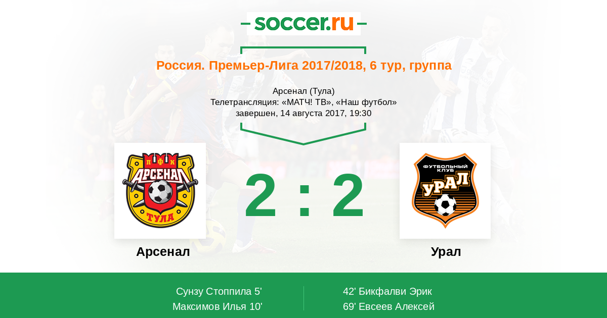 Интересным получилась сегодняшняя игра! "Арсенал" довольно быстро повел в два мяча и продолжал активно играть в атаке, не смотря на это футболисты "Урала" смогли отыграться! Стоит отметить, что подопечные Александра Тарханова вновь не проигрывают! Предлагаем выбрать лучших игроков в составах команд, комментировал для вас Дмитрий Отмахов. До новых встреч на soccer.ru.