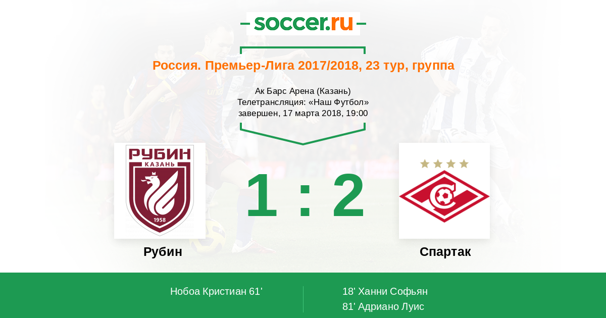 Рубин - Спартак: обзор матча 17 марта 2018