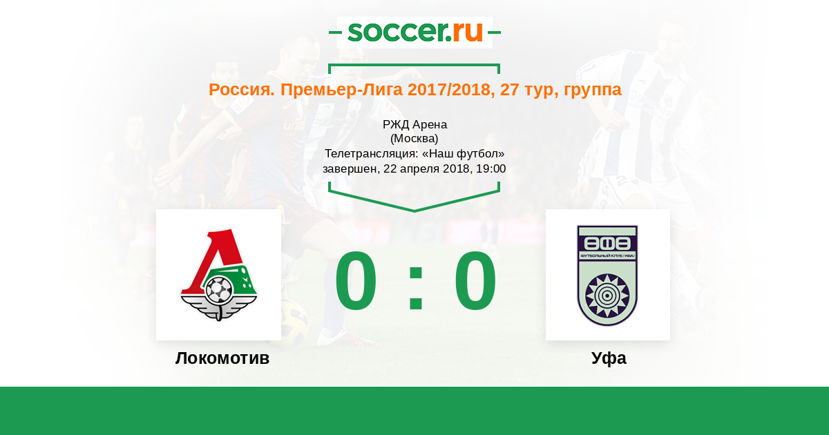 Прижали на последних минутах "железнодорожники" соперника к своей штрафной, но уфимцы смогли сохранить свои ворота на замке! В итоге команды поделили очки! "Локомотив" теряет очки, что позволяет конкурентам сократить отставание от лидера! Комментировал для вас Дмитрий Отмахов. До новых встреч на soccer.ru.