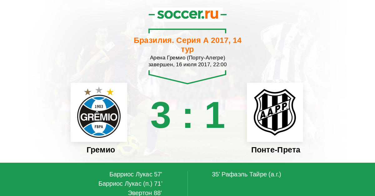 Гремио - Понте-Прета: обзор матча 16 июля 2017