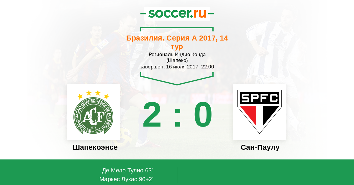 Шапекоэнсе - Сан-Паулу: обзор матча 16 июля 2017