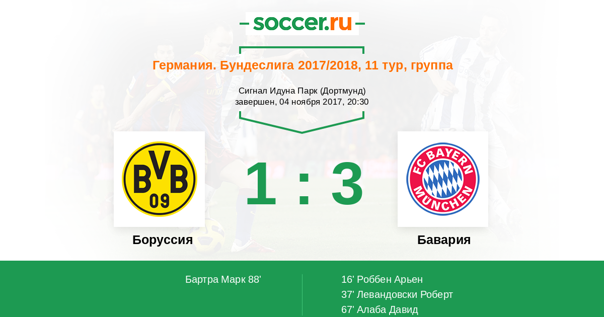 Боруссия - Бавария: обзор матча 4 ноября 2017