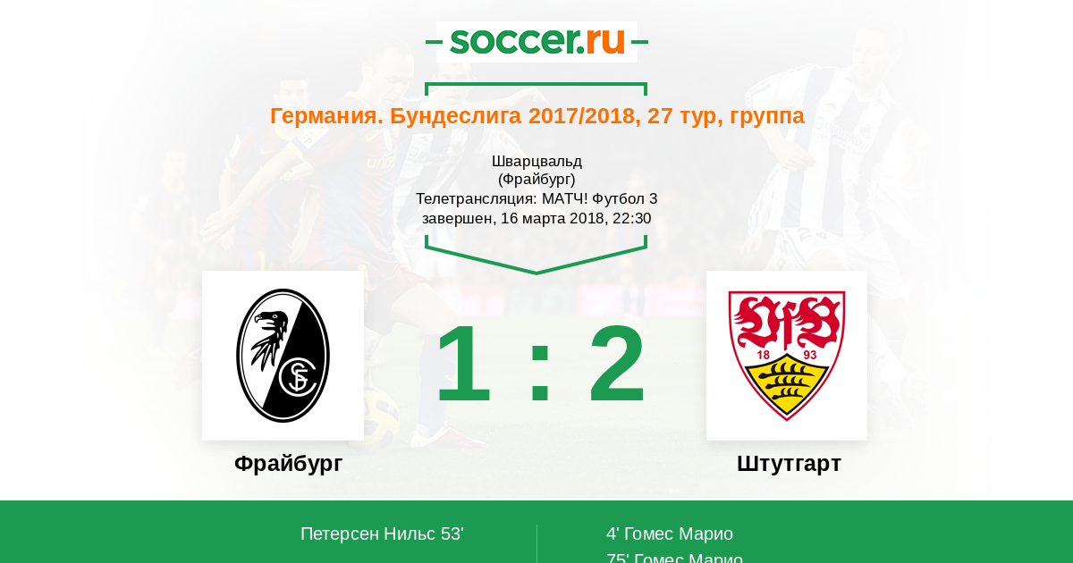 Фрайбург - Штутгарт: обзор матча 16 марта 2018